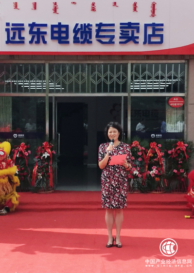 馬月琴代表集團董事、智慧能源董事長蔣承志祝賀遠東電纜鄂爾多斯專賣店的開業。她指出,遠東秉持“誠信務實、創新創優、和靈共贏”的核心價值觀,是榮獲電線電纜行業 “全國質量獎”的企業,位列“中國企業500強”。專賣店是遠東智慧能源的“形象窗口、業務窗口、物流窗口、服務窗口”,在公司正確領導與業界各位朋友的大力支持下,經過專賣店各位同事自身努力拼搏,遠東電纜鄂爾多斯專賣店一定會取得豐碩成果。