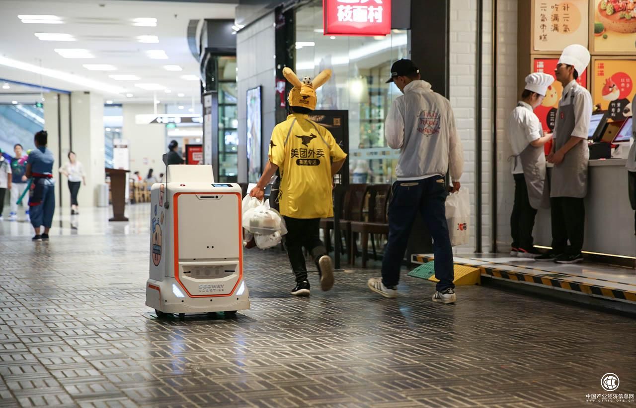近日,在北京朝陽大悅城逛街的人發現一輛印著Segway Robotics和美團標志的的配送機器人在商場內不時穿梭,所到之處吸引路人頻頻駐足觀望。配送機器人到達商場門口時,美團外賣小哥就從機器人“肚子”里取出客戶預定的餐食,然后絕塵而去。