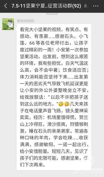 就在上周,堅果『中國必達計劃』的寧夏遠征營7月11日完美結營,大堅果小堅果們探秘了西夏博物館、攀登了賀蘭山、在明長城上露營最后挺進沙漠,回程前,還走進中寧枸杞之鄉好好體驗了一把西部生活。雖然現在遠征結束了,但是經歷了7天6晚,孩子們在夏令營中獲得的開心與成長依然進行著!這不,群里的大堅果小堅果們已經開始相約明年再見了!