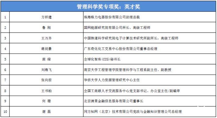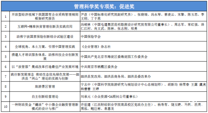 據了解,管理科學獎是依據國務院《國家科學技術獎勵條例》,經國家科學技術獎勵辦公室批準設立的全國性科學技術獎,也是管理科學方面唯一保留獎項。