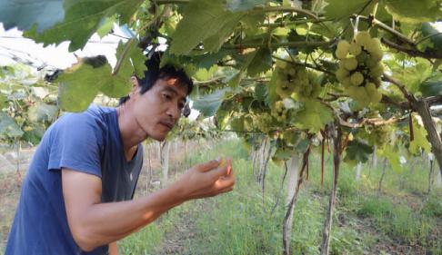 “園區內種植的葡萄種類多樣化,鮮食葡萄有早熟、中熟、晚熟等十多個品質(美人指、夏黑、醉金香)及部分釀酒葡萄;而我們采取科學化種植,為達到無公害有機葡萄種植要求,我們采用高科技滴灌系統,采用套袋技術,以有機肥料,農家肥為主,另有南京、無錫葡萄種植協會專家長期指導;目前我們葡萄莊園品種多樣,結構合理,上市時間周期長,大約7月中旬到9月下旬,生產優質鮮食800噸,年銷售額可達1000萬元。”說起葡萄園的現狀,園主面帶微笑的向記者侃侃而談。