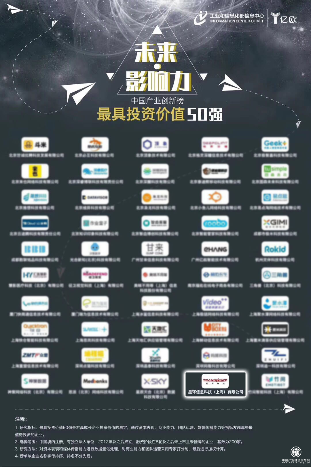 2018年8月19日,工信部信息中心與億歐智庫在2018“創客中國”互聯網+大數據創新創業大賽暨產業投資峰會上聯合發布了“未來·影響力”中國產業創新榜。星環科技入選中國產業創新榜“最具投資價值50強”。
