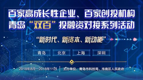2018年5月,青島市委市政府印發《關于推進新舊動能轉換重大工程的實施意見》,對青島新興產業發展做了方向引領。意見提出,要著力在企業培育方面率先突破,要深化改革,創新市場化投融資機制。目前,青島經認定或備案的300多家孵化器、眾創空間中,共有在孵企業和畢業企業超過7000家,有相當一部分的科技型企業,需要通過資本的助推才能獲得高速的發展,從而成長青島的“獨角獸”,青島“雙百”投融資對接系列活動應運而生。