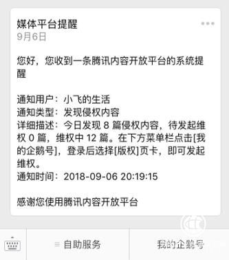 騰訊內容開放平臺維權提醒
