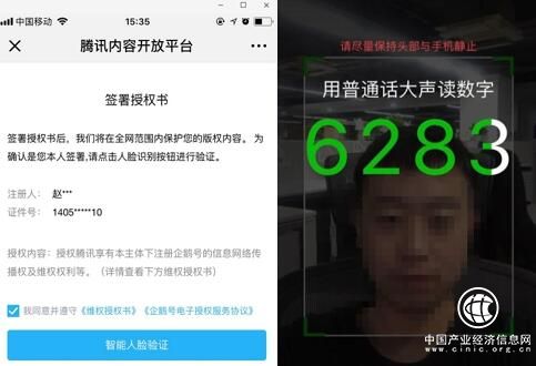 當企鵝號作者原創作品遭外站侵權時,只需將維權權利授權給企鵝號,就可以享受一鍵維權的服務。在PC端,作者授權企鵝號對侵權作品進行維權需要提供手機號三要素,簽署電子授權書;但在”騰訊內容開放平臺”h5移動端,作者只需進行人臉識別即可授權,簡化了授權流程,且相對于電子簽章,人臉識別授權法律效力更高。