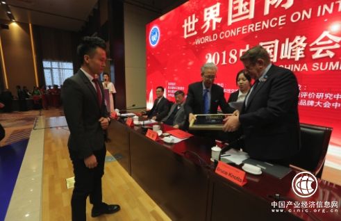 世界國際品牌大會執行主席劉毅為為中國品質品牌企業頒發“世界國際品牌”認證書