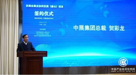 中展集團總裁賀彩龍在致辭中表示,在今天國家隆重紀念改革開放四十周年這個有著十分重要意義的日子,我們舉辦京冀會展業協同發展(唐山)項目簽約儀式,是以習近平新時代中國特色社會主義思想為引領,乘國家深化改革、擴大開放的東風,進一步貫徹落實京津冀協同發展戰略、深入推動會展產業轉型升級、促進地方經濟發展和對外開放的實際舉措。推動區域協調發展,需要在政府的引導和大力支持下,充分發揮行業協會和企業的市場主體作用,優化資源配置,實現更加均衡、高質量的發展。展覽業是現代服務業的重要組成部分,需要主動作為,落實國家京津冀協同發展戰略,同時充分利用京津冀協同發展的良好條件,贏得更廣闊的發展空間和更大的發展機遇。中展集團作為貿促會下屬企業,在京津冀會展業協同發展的大背景下,積極發揮示范和引領作用,推動京津冀會展業協同發展,促進區域會展產業結構優化,為區域會展業和經濟社會的高質量發展貢獻自己的力量。