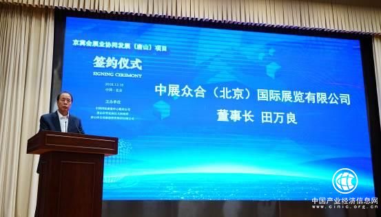 2018年12月18日上午,中國國際展覽中心集團公司與唐山市曹妃甸區人民政府、唐山市文化旅游投資集團有限公司在北京聯合主辦“京冀會展業協同發展(唐山)項目”簽約儀式。國內知名組展單位、入駐產業園區企業和會展相關行業代表近100人參加了本次活動。