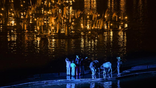 《印象·劉三姐》劇照——當地漁民牽著自家水牛走上舞臺參與演出