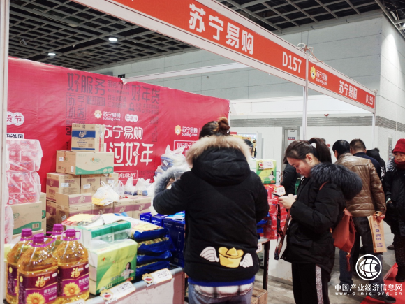 蘇寧易購展位擺滿琳瑯滿目的年貨