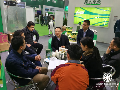 南山牧業董事長姚慧(中)與奶業專家共商“科技興奶”