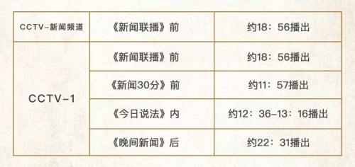 據介紹,加多寶廣告此次覆蓋CCTV-1、CCTV-新聞頻道兩大強勢頻道的四檔核心新聞欄目!具體播出時間如下:
