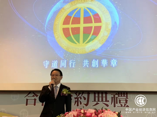 △ 中華民族致公黨主席、沃華國際董事長陳柏光在合作締約典禮上致辭