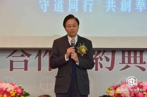 △ 產官學界貴賓——中國臺灣地區“前行政院長”張善政在合作締約典禮上致辭