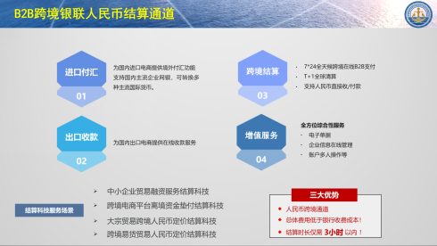 公司旗下的跨境結算科技平臺是目前唯一一家全業務鏈的人民幣結算科技的數字金融服務平臺,將引入銀行、金融機構、物流、保險、交易所等第三方服務商,全面構建人民幣資產交易的結算科技體系,促進寧波保稅區與其他國家之間,乃至全球的貿易、投資與合作。