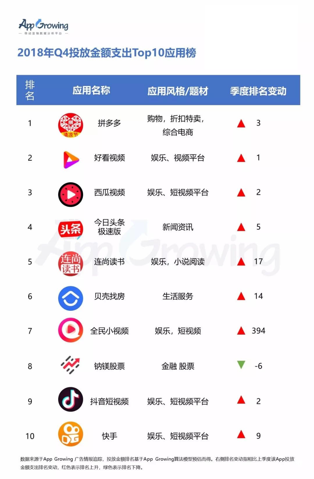 以上為2018年 Q4 投放金額支出Top10游戲及應用排行榜Top10,登錄App Growing官網查詢更詳細的排行榜信息。