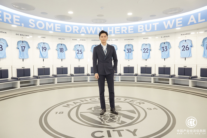 (李晨在曼城球員更衣室留影)