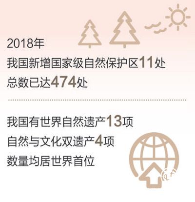 據介紹,自然保護地是各級政府依法劃定或確認,對重要的自然生態系統、自然遺跡、自然景觀及其所承載的自然資源、生態功能和文化價值實施長期保護的陸域或海域。在自然保護地體系中,保護區建設是我國自然保護地建設的主體。2018年,我國新增國家級自然保護區11處,總數已達474處。自然保護區范圍內保護著90.5%的陸地生態系統類型、85%的野生動植物種類、65%的高等植物群落。目前,我國有世界自然遺產13項、自然與文化雙遺產4項,數量均居世界首位。我國還擁有國家礦山公園34個,海洋特別保護區111處。