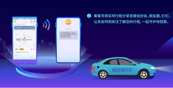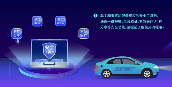 嘀嗒順風車不僅為合乘雙方準備了安全工具包,乘客更可開啟“安全護航模式”與“超級護航模式”,平臺時刻關注行程變化。同時,乘客可將行程分享至親友,為旅程增添安全保障。