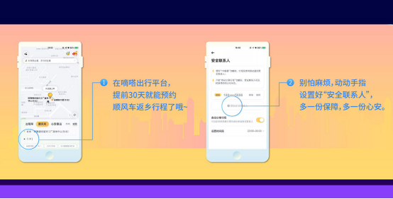 在春運期間,乘客可提前30天預約嘀嗒順風車返鄉行程;提前設置“安全聯系人”,多一份保障,多一份心安。
