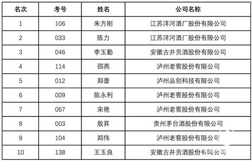 3月21日至3月22日,為期兩天的“酒城論劍·品酒爭霸”全國品酒師大賽,來自全國的國家級白酒評委經過激烈的角逐,前三名選手脫穎而出。他們分別是來自江蘇雙溝酒業股份有限公司的朱方剛、來自蘇酒集團貿易股份有限公司的陳力、來自安徽古井貢酒股份有限公司的李玉勤。