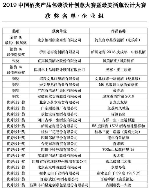 3月23日舉辦的2018年度“青酌獎”酒類新品評選活動和酒類產品包裝設計大賽暨最美酒瓶設計大賽,經過行業專家和自全國各地的經銷商代表、消費者代表以及媒體代表共同評選,堅持公正、公平、公開的原則,保持高標準和科學性的準則,最終獲獎產品也順利產生。在此,對獲獎個人以及獲獎產品表示誠摯的祝賀!