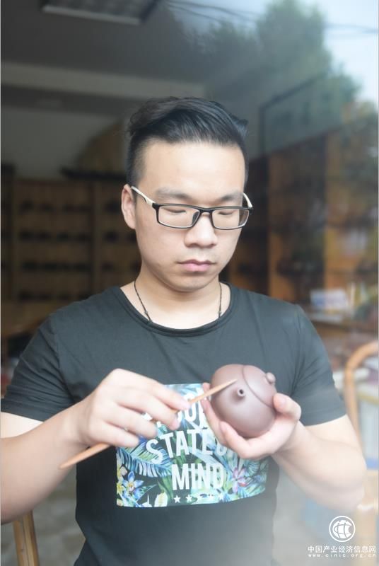 周成杰,實力派青年陶藝家,江蘇陶瓷行業協會會員,中國工藝美術協會會員。生于宜興壺藝世家,從小受到紫砂藝術的熏陶,創辦了獨具自己風格的壺藝館。代表作有華穎壺、仿古壺、梨形壺、西施壺、掇球壺、笑櫻竹節壺等。