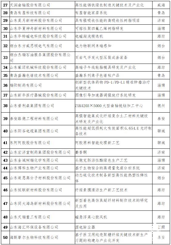 山東制造·“硬科技”TOP50榜