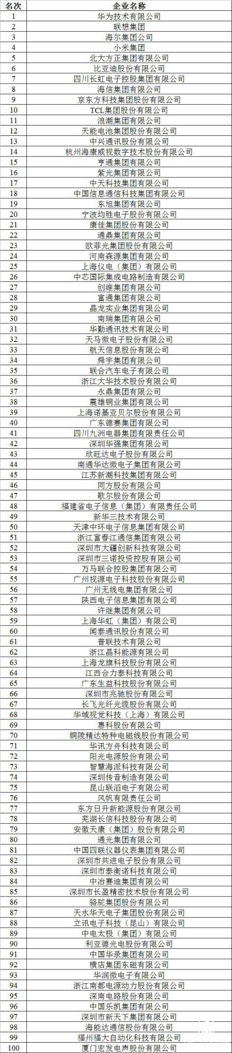 附:2019年(第33屆)電子信息百強企業