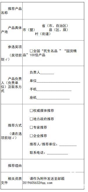 活動9月中旬正式啟動,活動將采取線上報名征集的方式(征集表附后),通過地方政府推薦、專家推薦、企業推薦、網民推薦等形式,征集候選產品。