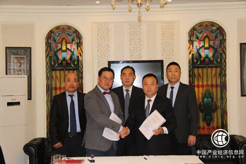 俄中一帶一路投資聯合會主席荊寶貴(右)與蒙古國騰飛金三角公司總經理巴特簽訂合作備忘錄