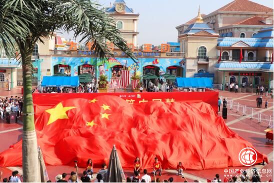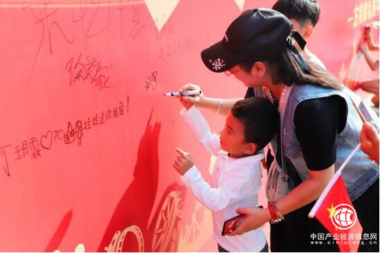 上午九時許,青島方特《獻禮祖國70周年——少年共筑中國夢》活動正式開始。青島方特近200名員工熱血集結,每個人手持五星紅旗,神采奕奕、壯志昂揚合唱《我和我的祖國》,歌唱祖國、祝福祖國。詩朗誦《我的中國夢》童音響徹青島方特,展現了當代少年之風采。書法藝術家現場揮灑潑墨,以書法的形式表達了對祖國的祝福。合唱結束后,眾人合力拉起巨幅國旗,共祝祖國繁榮富強。“說說心中的愛國話”巨型留言板上,是每一位游客對祖國真誠的祝福,游客的愛國情懷得以充分地表達。