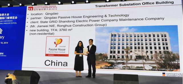 從防水透氣膜、石墨聚苯板等新型節能建材,到環境一體機、除霾新風智能窗等高端裝備,從單體示范建筑到國家超低能耗建筑產業基地,大會匯集了當今被動房領域的最新技術和成果。被動房技術中心獲奧地利綠色星球獎,在大會頒獎環節,奧地利政府代表Latzlo Lepp向中德生態園頒發奧地利綠色星球獎,以表彰被動房技術中心在可持續尤其是節能建筑領域的杰出表現。根據被動房技術中心2018年度能耗數據顯示,項目總能耗為375391kWh,折合單位建筑面積耗電量27.26kWh/㎡a。相對比項目通過不斷合理優化運維模式,2018年比2017年節約用電70105kWh,能耗強度降低16%,減少二氧化碳排放量69894kg。