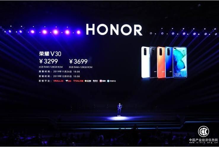 榮耀V30有6GB+128GB、8GB+128GB多個配置,分別為3299元、3699元;榮耀V30 PRO有8GB+128GB、8GB+256GB多個配置,分別為3899元、4199元。11月26日18:08,榮耀V30標準版將全面開啟預售,12月05日10:08在華為商城及線上授權電商平臺、華為授權體驗店及線下授權零售商等正式開售。榮耀V30 PRO嘗鮮預購時間為12月5日10:08,首銷時間為12月12日10:08。
