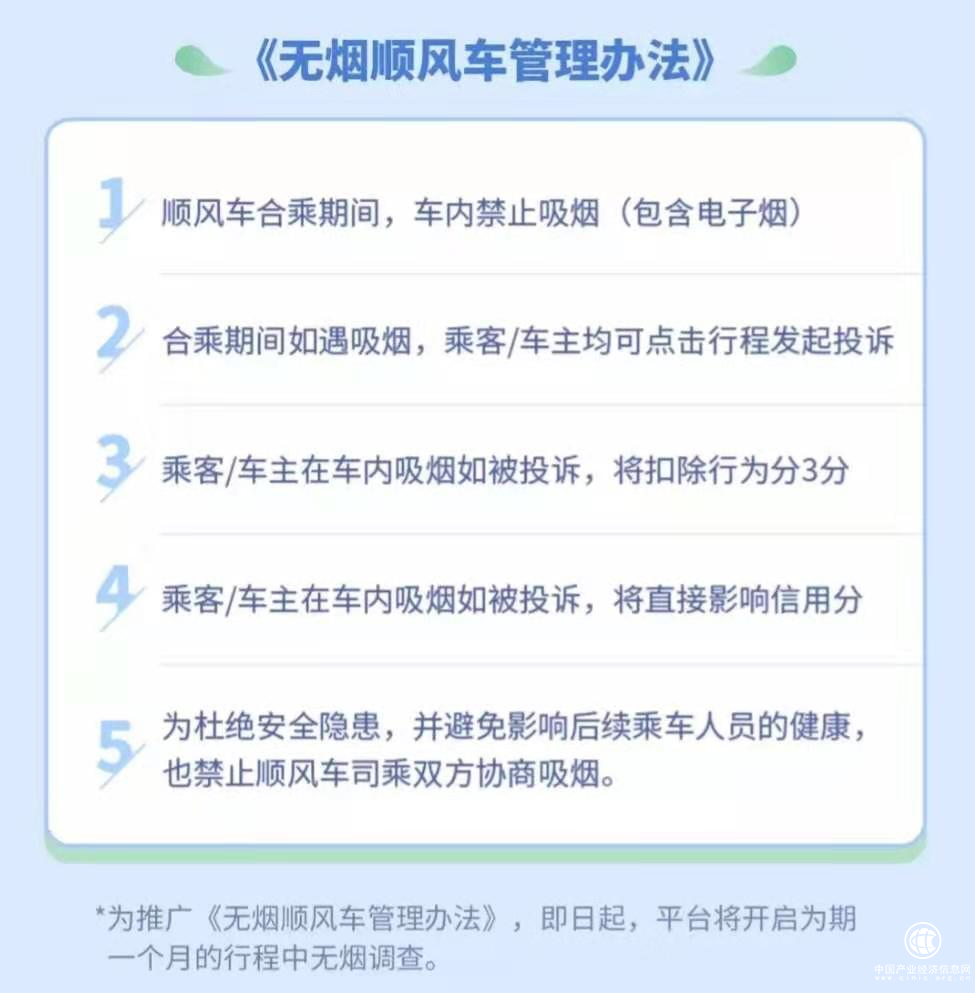 5. 為杜絕安全隱患,并避免影響后續乘車人員的健康,也禁止順風車司乘雙方協商吸煙