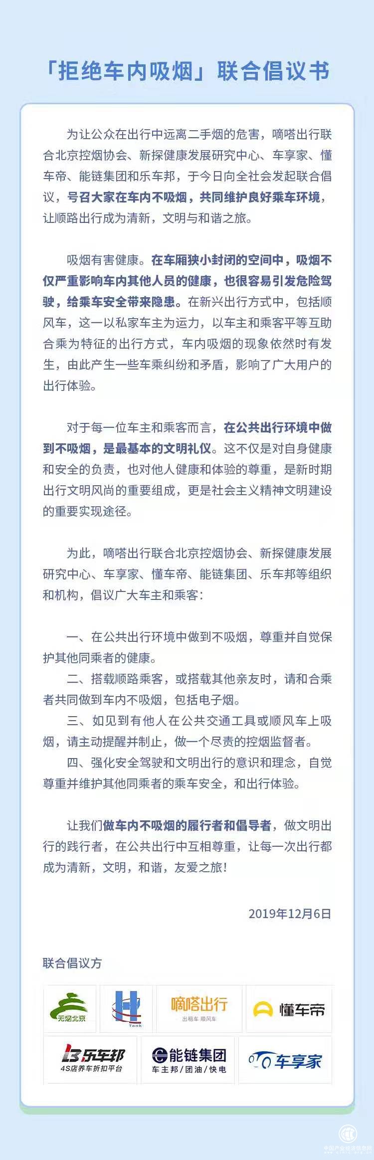 與此同時,嘀嗒出行還聯合北京控煙協會,新探健康發展研究中心等公益組織和機構,發布拒絕車內吸煙聯合倡議書,號召公眾在車內不吸煙,共同維護良好乘車環境,讓順路出行成為清新,文明,和諧之旅。