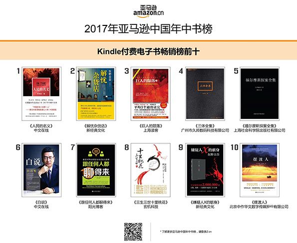 7月25日,亞馬遜中國發布了2017年度年中圖書排行榜,這張榜單為2017年上半年國內閱讀情況提供了參考。