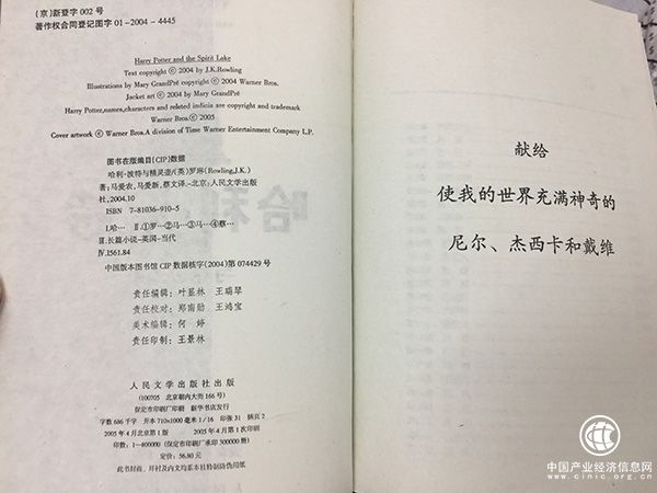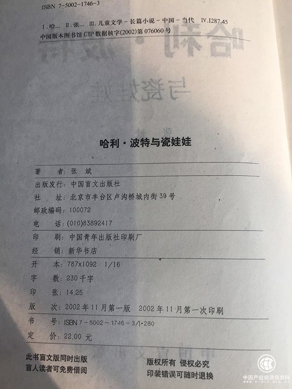 平心而論,比起前面幾本打著“J.K.羅琳 著”、“人民文學出版社”出版的山寨盜版作品來說,這部算是業界良心。《哈利·波特與瓷娃娃》具備正規的書號,作者名為張斌,由中國盲文出版社出版,還寫著“版權所有 侵權必究”。