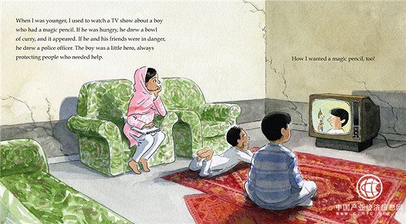 馬拉拉在繪本的開篇寫道,她小時候經常看一檔名為《Shaka Laka Boom Boom》的電視節目,講述了一個名叫桑珠(Sanju)的男孩和他的魔法鉛筆的故事。當時她也很想要有一支屬于自己的魔法鉛筆——有了它,就能讓她心愛的人開心,去除城市里彌漫的垃圾氣味,甚至還能讓她在早上多睡一個小時。