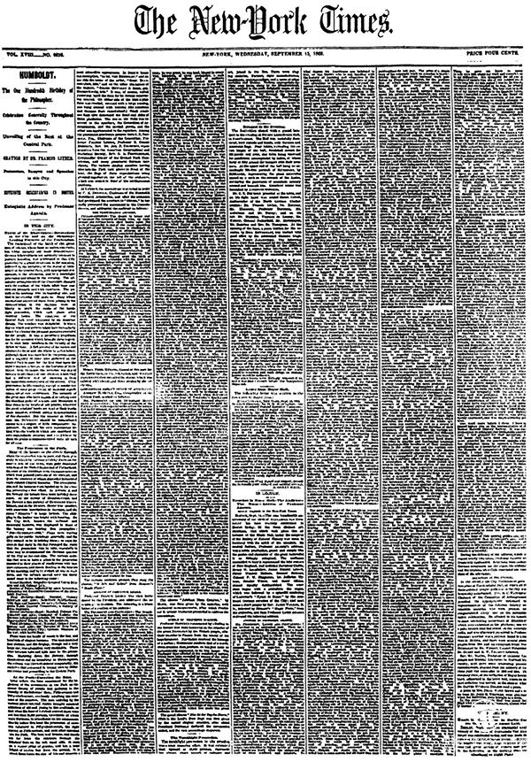 《紐約時報》頭版關于洪堡百年誕辰的報道