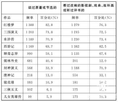 雖然大學生的文學經典閱讀狀況越來越引發人們的擔心,但近些年來電影、電視劇、戲劇等藝術形式對文學經典的改變卻呈現出一派熱鬧景象。調查團隊對大學生接觸古典文學、現代文學、紅色文學及其改編作品的情況分別進行了調查。