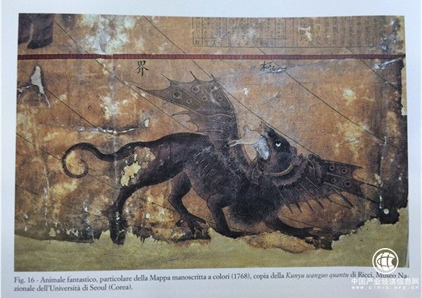 中國版的《坤輿萬國全圖》中,有翼獸接近于中國傳統瑞獸“辟邪”。