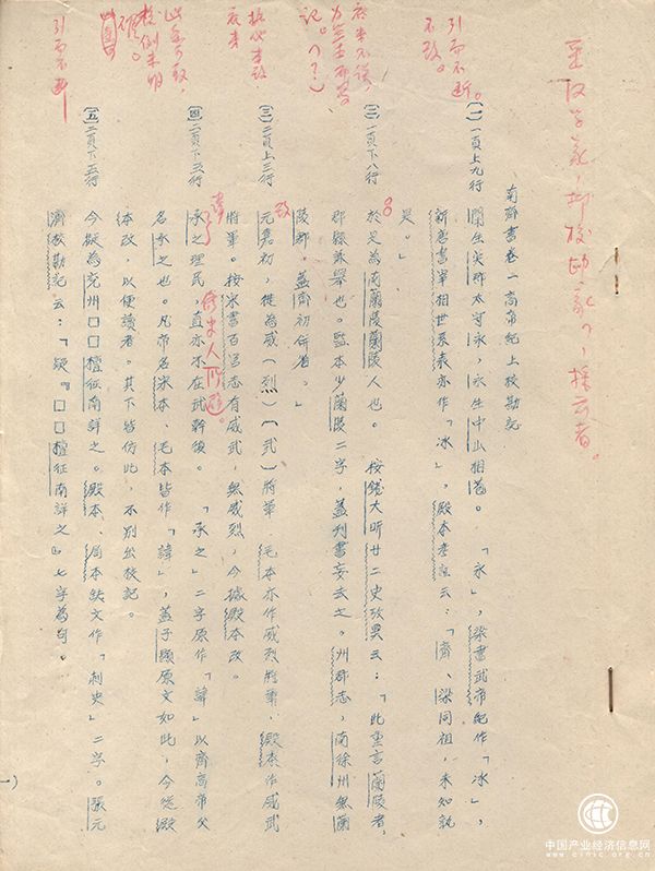 《南齊書》以及其后的《宋書》的版本校勘,都由編輯部安排書局老編輯張義鵬承擔,到1964年5月,張義鵬完成了《南齊書》金陵書局本與百衲本的通校,提交校勘記錄三百二十四條,并對殿本的異同也作了相應記錄。從這時候起,王仲犖先生開始撰寫校勘記(1964年5月14日《二十四史工作情況匯報》)。
