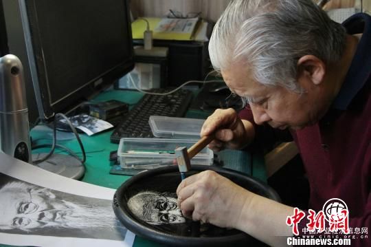 記者9日在單孟渤家客廳看到,墻上掛著滿滿21個刻盤,都是難度極大的人物肖像。趙曉攝