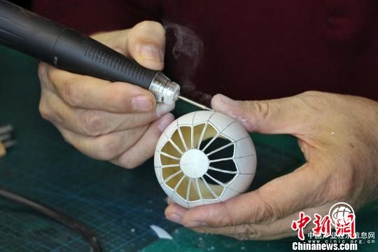鏤空鵝蛋殼上的“世界地圖”,是濟南市蛋雕、刻瓷雙料非遺傳承人單孟渤最負盛名的蛋雕作品。趙曉攝