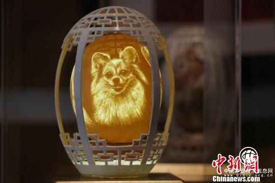 2018年是戊戌狗年,單孟渤特意做了有狗狗元素的蛋雕。在燈光的映襯下,小狗的毛發清晰可見、栩栩如生。馬瑾倩攝