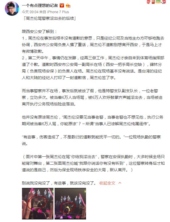 不過,微博名為“一個有點理想的記者”的用戶,連日緊咬周董,“在幾萬人的體育場喊出讓正在依法執法的警察滾出去,這百分百涉嫌妨害公務罪”。