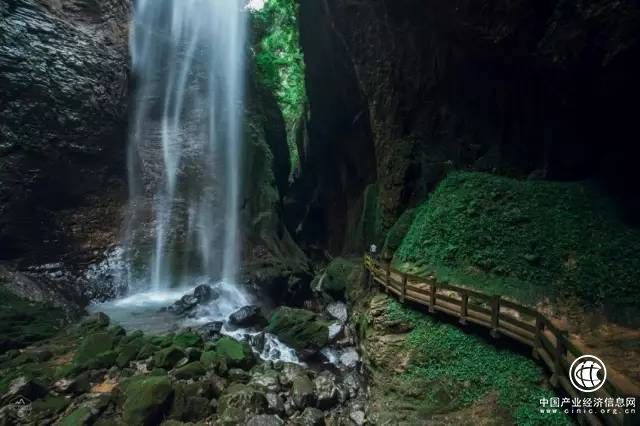 你可以沿著石梯,在云霧繚繞、水溶石縫、逶迤棧道間,細細領略龍水峽地縫的壯觀與奇特,也可以乘坐電梯直接下到距離地面80米的谷底,迎面而來的是飛流直下的瀑布,帶來沁人心脾的涼爽。