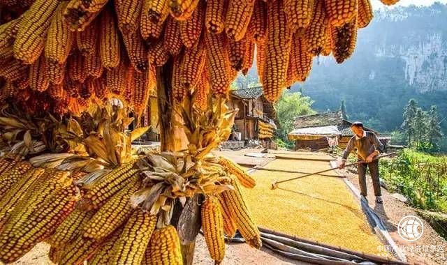 放眼望去,阡陌縱橫,一層層的梯田像散落山間的曲譜。土家族的吊腳樓依著山勢而建,層疊而上,仿佛就像一只只展翅高飛的雄鷹,翱翔于山嶺之中。房前屋后的曬滿了金黃色的玉米,一派豐收的景象。