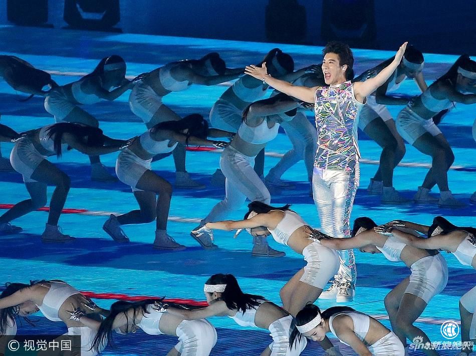8月19日,臺北,2017臺北世界大學生運動會在臺北田徑場舉行開幕典禮。王力宏無袖裝現身,blingbling閃耀全場。